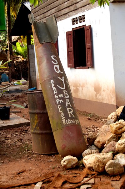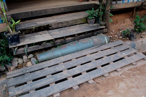 Laos. El pais mas bombardeado de la historia soportó un bombardeo cada 8 minutos durante 9 años, una tonelada de explosivo por habitante. Se me pone la piel de gallina de imaginarmelo y solo escuchamos 4 bombas.